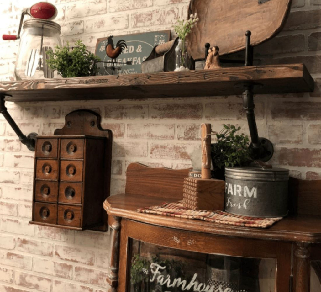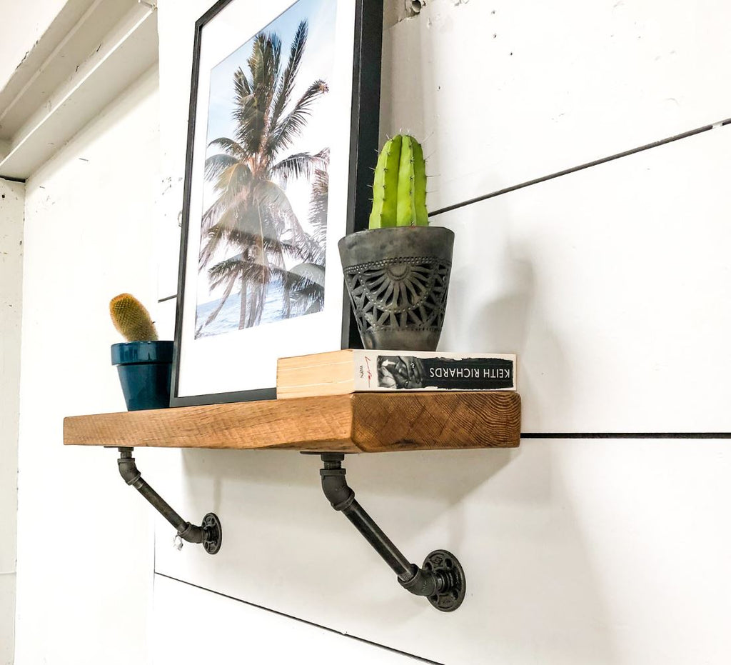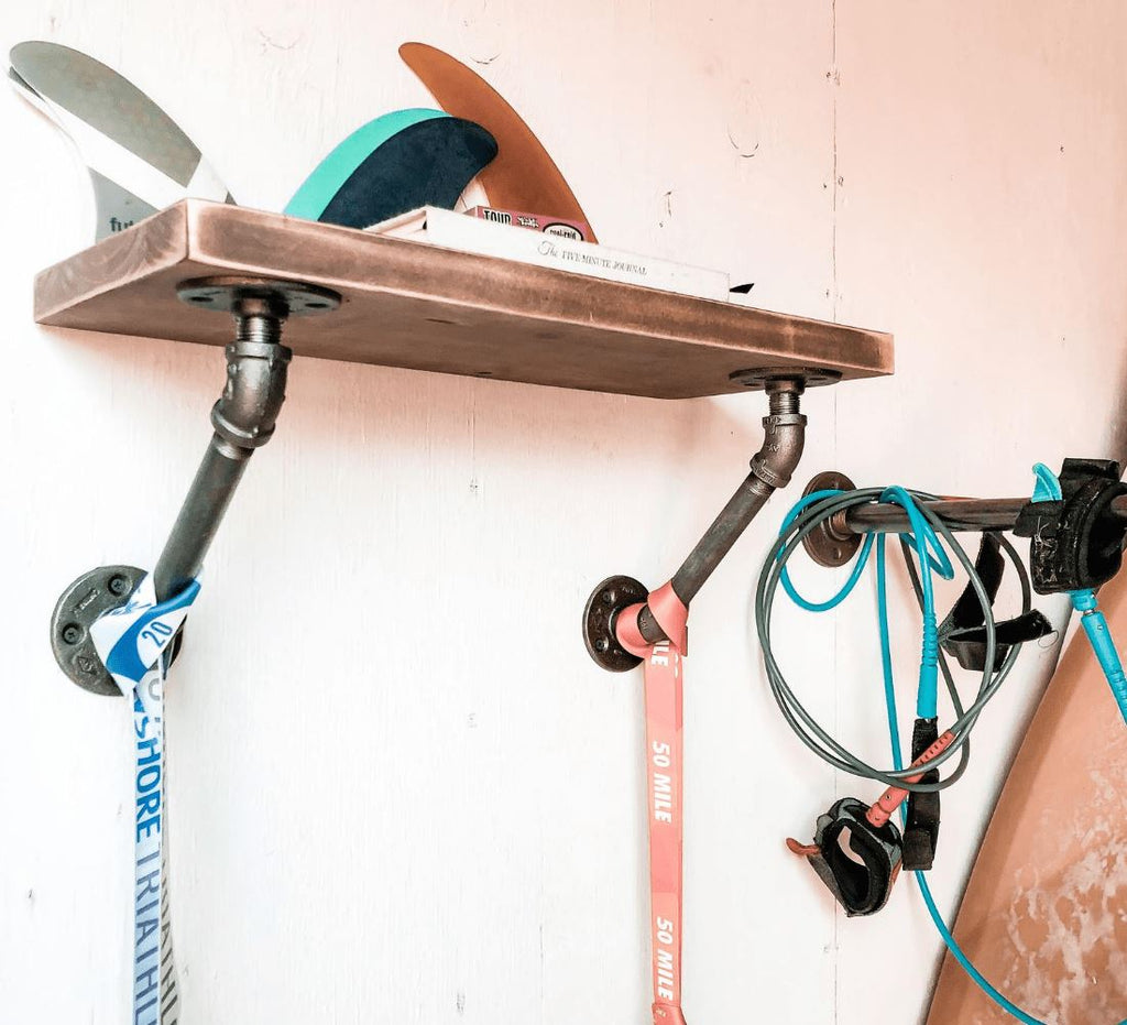 This set included with 4 flanges, 2 x 6in or 10in pipe, 4 x 45-degree elbow, and 4 x thread pipes for a one-of-a-kind industrial pipe shelf.